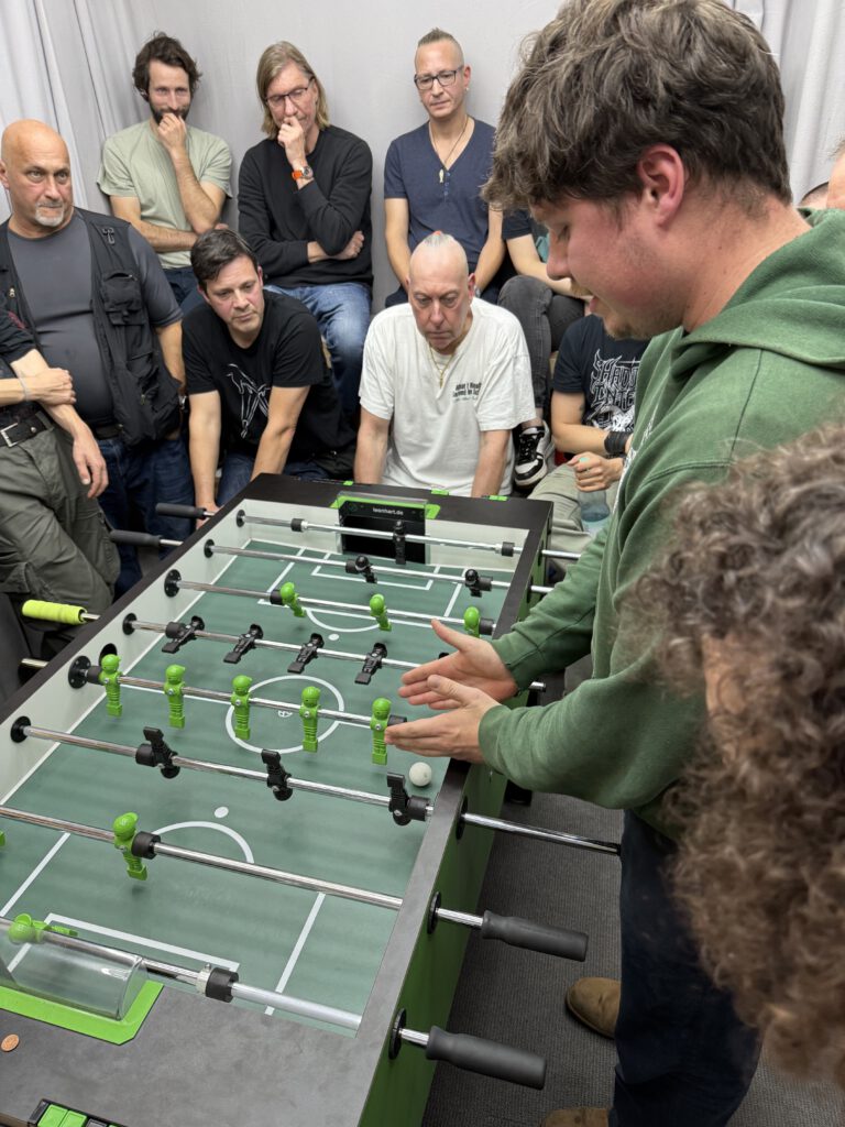 Am 29. Oktober 2025 war es voll bei der Kickerfreude Berlin – 32 Kickerbegeisterte kamen zusammen, um von Hans zu lernen. Hans ist seit dem 1. September 2025 offiziell Bundestrainer der deutschen Herren-Nationalmannschaft und eine Legende der Berliner Kicker-Community.