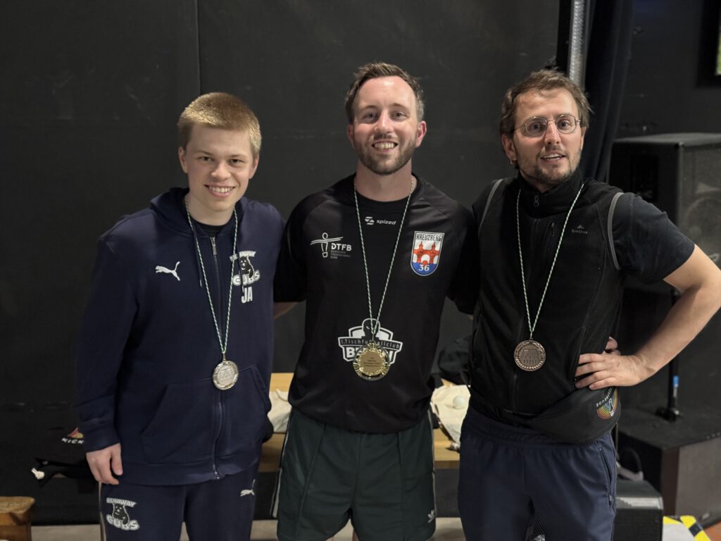 Der OE am zweiten Turniertag bot ebenso hochklassigen Tischfußball. Hier konnte sich Milan Eßer den Titel sichern, dicht gefolgt von Justus Aust, der nach seinem Erfolg im Doppel auch im Einzel auf dem Podium landete. David Strzelczyk komplettierte als Drittplatzierter das Siegertreppchen.